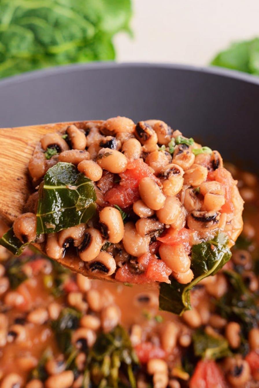 Black-eyed peas simmered low with smoky bacon and fresh collard greens in savory chicken broth and diced fire-roasted tomatoes. A splash of apple cider vinegar wakes it up. Slow cooks till the peas soften while greens wilt into tender ribbons. Bay leaf and thyme deepen flavor. Simple pantry swaps included. Made with less broth for thicker finish. Slightly longer simmering to meld components.