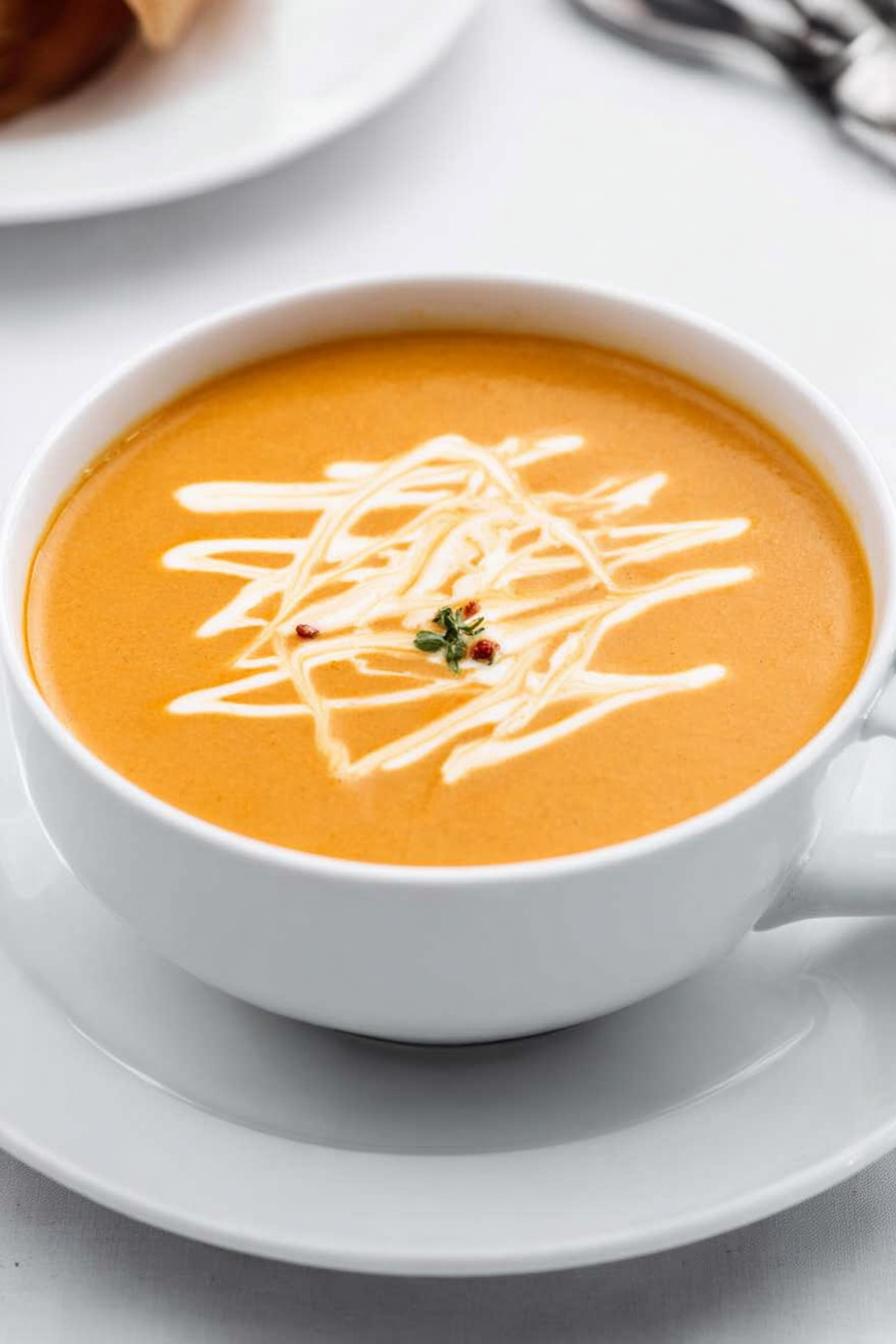 - Ladle into bowls. Garnish each with a swirl of heavy cream for richness and visual contrast. Serve immediately.