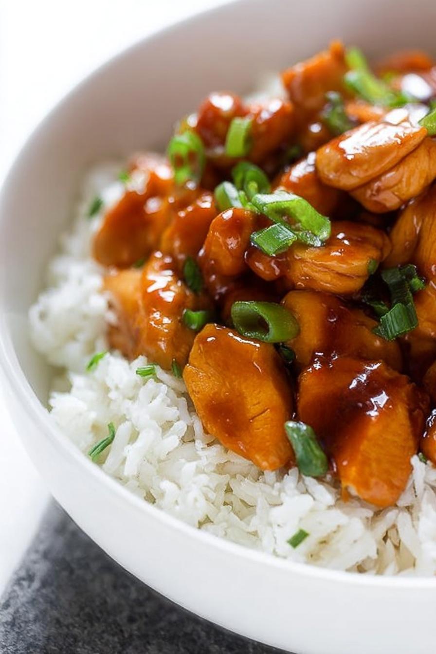 Rinsing rice is foundational; washes away surface starch to avoid gummy clumps. Steam finish traps moisture in sealed pan, avoid lifting lid early or lose steam. Pan heat management vital—hot enough to crisp chicken cubes quickly without burning. Batch cooking chicken avoids crowding; prevents steaming and soggy surfaces. Browning builds flavor via Maillard reactions—look for golden brown, not black char. Sauce components whisked before adding lets flavors marry; wait until chicken is browned then combine to avoid burning sugars too early. Cornstarch slurry mixed cold, added gradually with constant stirring to prevent lumps and achieve desired viscosity. Simmer until sauce thickness coats chicken evenly and clings to rice later. Broccoli steaming requires timing to preserve crunch and bright green color; overcooking dulls color and softens bite. Garnishing last step freshens dish visually and texturally. Timing overlaps—while sauce simmers, steam broccoli to streamline workflow. Adjust everything by sight, touch, and sound cues rather than strict timers for best results in real kitchens where conditions vary. This approach prevents overcooked, flavorless plates and ensures each element performs optimally on final plating.