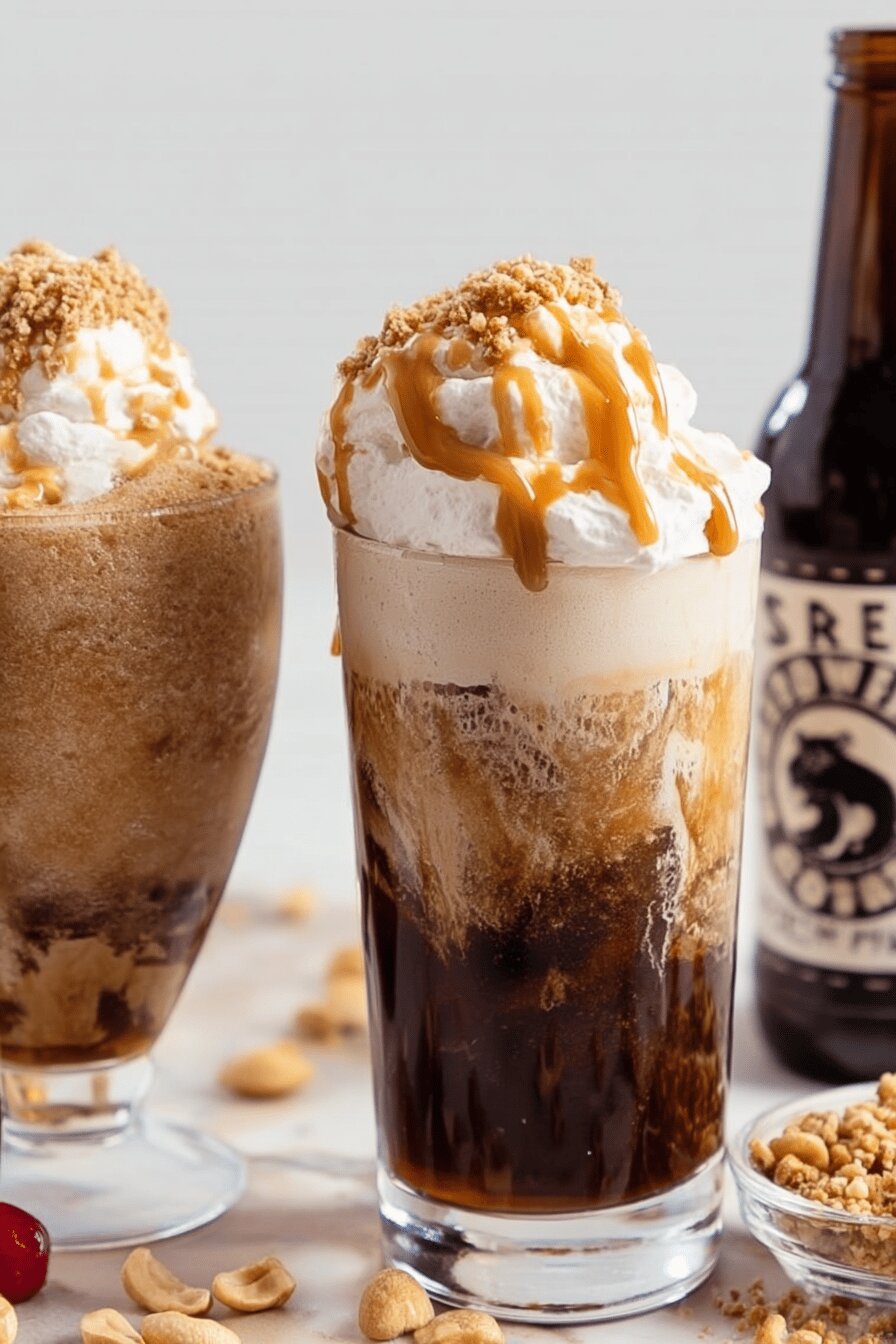 Cream soda works better than root beer when you want a less dominant sassafras punch and more vanilla crispness. Bourbon with vanilla flavor subbing Skrewball keeps the nutty spirit but cuts peanut butter overload for a subtler warmth. Salted caramel ice cream adds a salty sweet contrast that’s more sophisticated than plain vanilla — use gourmet or homemade with real caramel bits whenever possible. Whipped cream needs to be stable — homemade or high quality store-bought both fine, but avoid runny varieties. Salted caramel syrup adds visual interest and depth in taste; you can use thick caramel if unavailable. Roasted almonds are a must — raw won’t give same crunchy pop or aroma. Toast almonds lightly in a dry pan until fragrant, about 3 minutes, tossing constantly to avoid burning. Store nuts in airtight container if prepping ahead. If nuts allergy is an issue, toasted pumpkin seeds can replace for crunch and another layer of flavor.