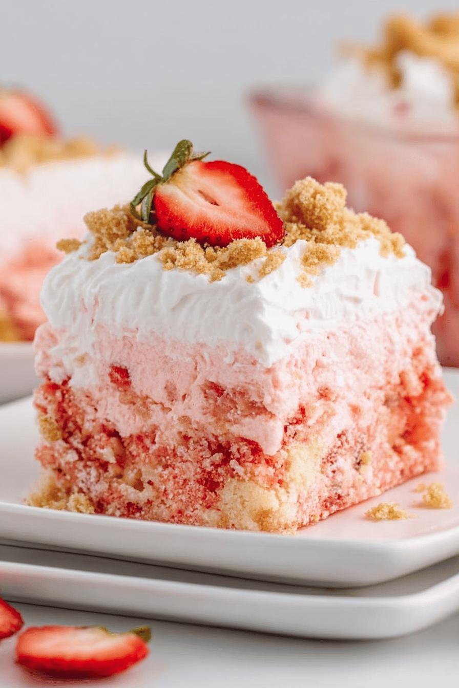 - Try lemon gelatin powder for tart twist; adjust milk soak by reducing sugar or switching pudding powder flavor. Add layers of sliced fresh strawberries between cake and whipped topping for more berry impact. Substitute crushed pretzels in crumb mix for salty crunch. Toasted coconut flakes added on top mix well too.