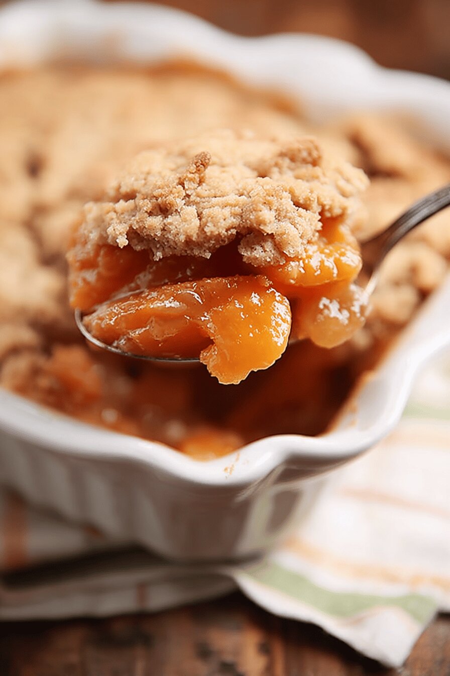 Sweet potatoes poached gently, sugar and spice melding in simmering bath. Crumbly dough made with oat flour and coconut sugar instead of white flour and brown sugar. Butter swapped for coconut oil. Milk replaced with almond milk, keeps crumbly texture but lactose-free. Half-inch slices give bite, simmered to tender but firm. Dough spread under and over filling, topped with a sprinkle of turbinado sugar for crunch. Bakes until golden with crispy edges. Rest before cutting. Best served slightly warm. Aroma rich cinnamon, subtle ginger, sweet, woodsy warmth. Textures contrast soft potatoes and crisp biscuit topping.