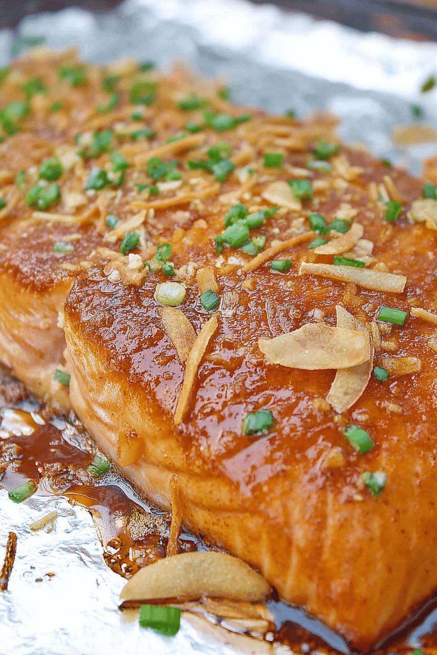 Salmon with sugar and spice glaze. No fuss, pure technique. Dry the fish well. That moisture kills crust attempts. Mix sugar and spices to a sticky paste, smeared on thick but even. Heat level controlled by chili, can dial mild or bold. Oven or grill—grill adds smoky edge, oven more forgiving. Watch for glistening flakes that separate with slight pressure. That’s doneness, not just timers or color. Top with fried shallot strings for crunch and caramelized aroma. Green onions freshen every bite. No fancy sauces here; every ingredient earns its place. Technique over flair. Precision over guesswork. Harness heat, time, texture. It’s that simple.