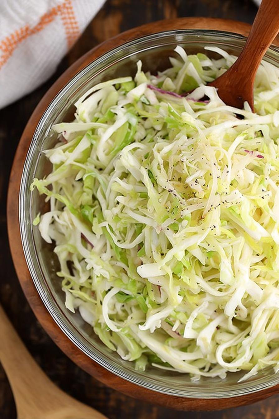 Cabbage thinned, core tossed. Onion sliced thin. Dressing of apple cider vinegar swapped in, olive oil, salt, brown sugar, a pinch of smoked paprika, and caraway seeds take the place of celery seed. Slaw tossed cold, flavors sharpen and blend in fridge. Crisp texture balanced by sweet and smoky acid notes. Prep quick but chilling matters for full flavor meld. Serve as side or sandwich topper. Adapt with napa cabbage or red onion if needed. Salt at finish to avoid over seasoning. Use tactile crunch as freshness cue. Keeps well chilled—re-toss before plating to redistribute dressing.