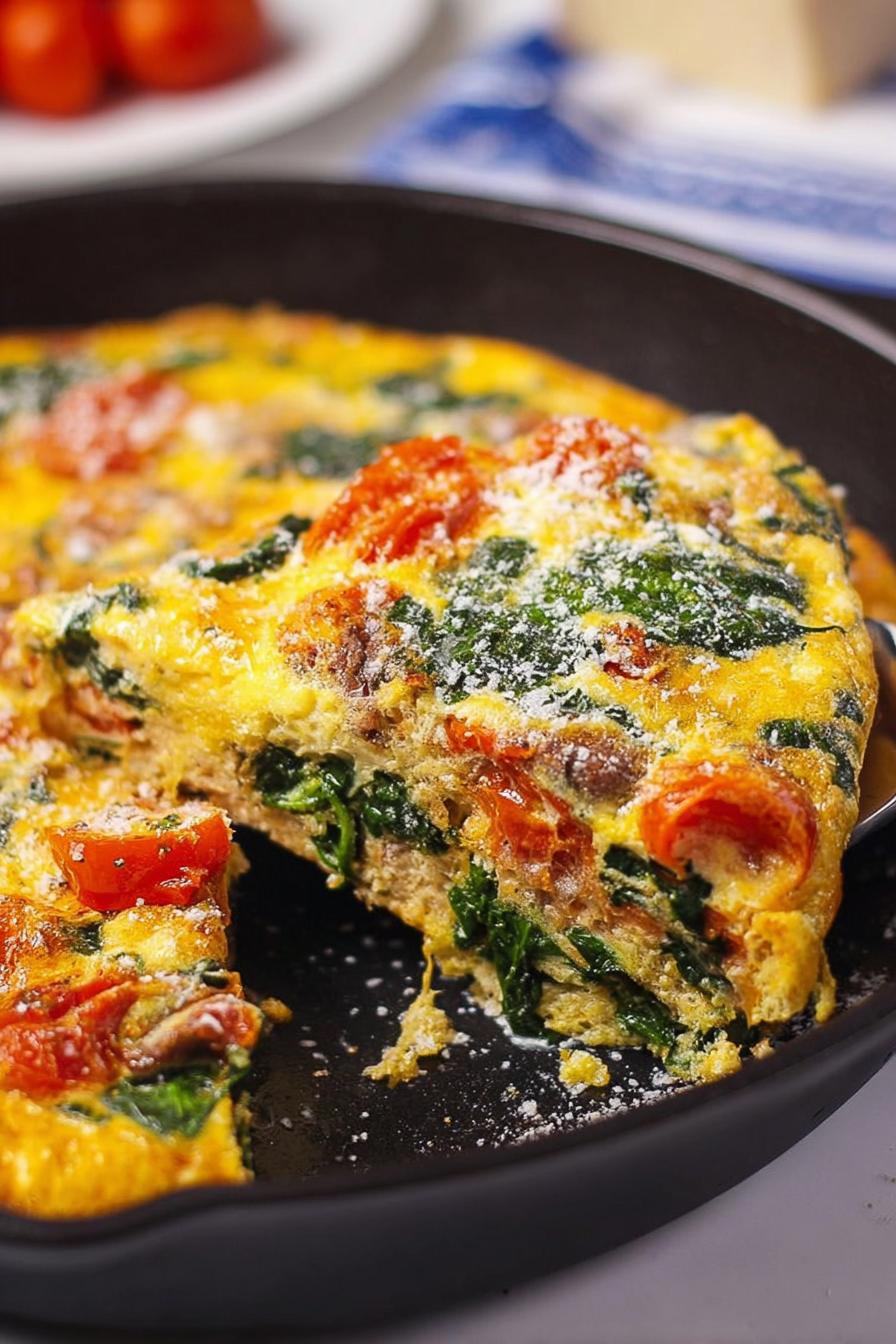 Control heat carefully during shallot sauté—no browning unless a nutty flavor is preferred. Watch tomatoes pop gently, kale must wilt but retain some chew. Pour eggs evenly, spread quickly, avoid bubbles that cause uneven set. Let eggs cook untouched until edges distinctly firm to touch but center still wobbly—if premature stirring, texture becomes crumbly rather than custardy. Oven steps: bake first just to finish cooking thoroughly, then broil briefly for caramelization and color contrast on cheese layer. Immediate rest is crucial for texture stabilization; cutting hot eggs leads to runny mess. Efficiency tip—prep veggies and eggs simultaneously to reduce downtime, clean while eggs cook stovetop. If unsure, test doneness by gentle shake—center jiggle distinct from raw liquid, edges firm but not rubbery.