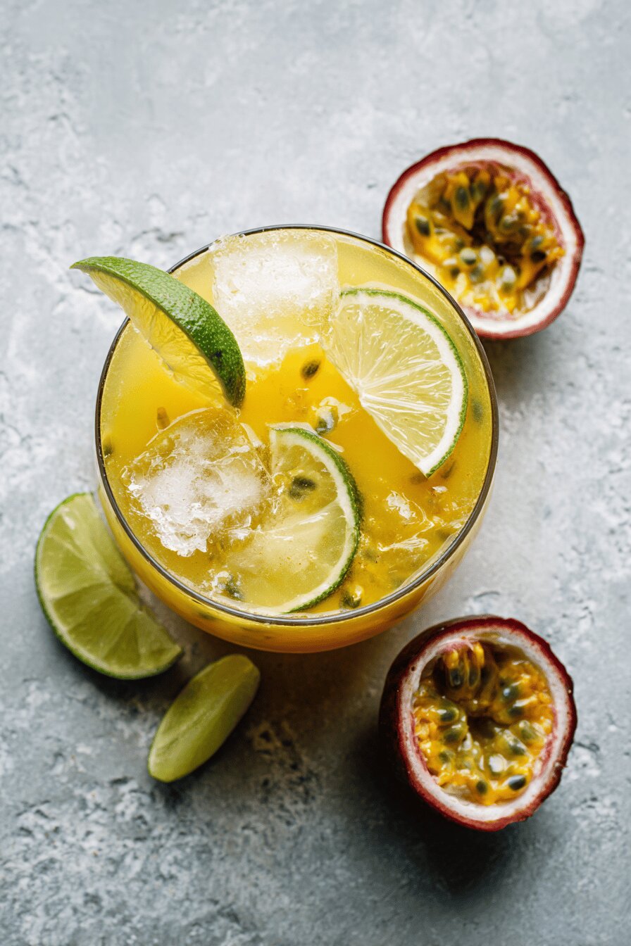 Passion fruit syrup varies significantly in sugar. Taste yours first. Homemade if you can — boil passion fruit puree with sugar and a splash of water until syrupy but still pourable, then strain seeds and chill. Store-bought usually sweeter, so reduce syrup quantity if needed. Light rum chosen for smoother, mellow backbone contrasting the tart lime — swap for tequila or white whiskey for different profiles but keep citrus balance. Ginger ale adds gentle spice and effervescence; alternatives like tonic water or soda water work but adjust sweet/tart accordingly. Ice choice affects dilution — crushed freezes solid quickly yet chills faster. Keep everything cold to avoid watery cocktails. Lime wedges not just for looks, squeeze one over each glass before dropping in for hit of oils.
