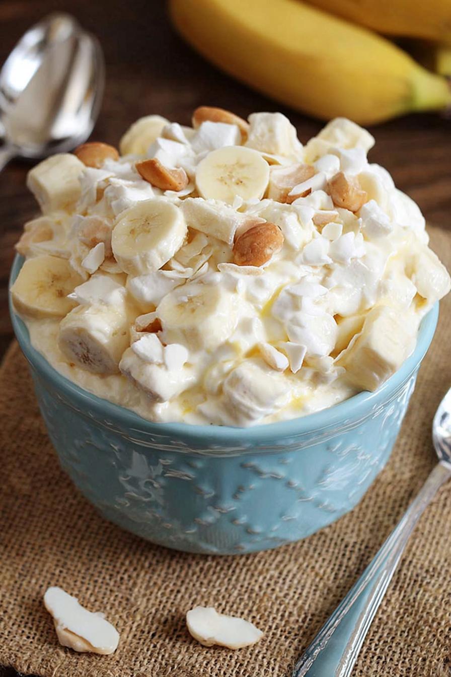 - 4. Add bananas, mini marshmallows, crushed graham crackers into pudding-cream mix. Fold carefully just until combined. Marshmallows give chew and sweetness. Graham crackers provide crunch and a honeyed depth instead of vanilla wafers’ soft cookie flavor.
