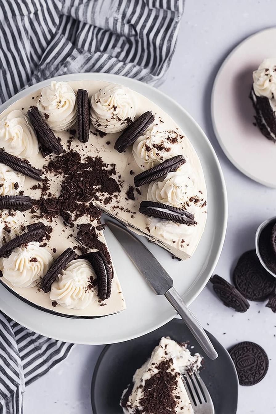 Crunch of cookie crust baked just enough to firm up—aroma of toasted sugar sits in air. Filling mixed from creamy cheese and melting white chocolate meld with whipped cream for airy density. Folded gently, no rush there, cracks texture along with cookie chunks folded in by hand. Top thick clouds of softly whipped cream, piped with care, Oreo crowns pressed gently on surface. Chill for hours; patience pays dividends. Variations easy—sub white chocolate for dark—cut sugar slightly. Technique is key: fold slow, watch edges after baking crust, and never overheat chocolate or cream. Follow sensory clues—the feel, not clock. Simple but requires respect.