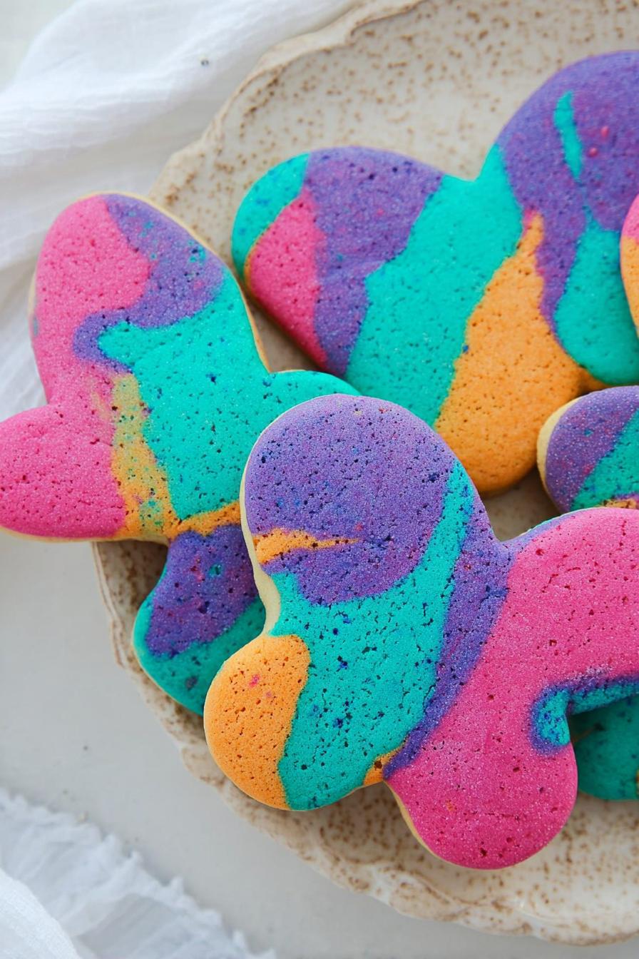 Color isn’t just visual — flavor, texture locked in with every step. Cream shortening and sugar until grainy, not fluffy. Eggs replaced by pasture-raised, maple syrup swaps in for vanilla — subtle twist, more chew. Flour sifted with baking soda and kosher salt, folded gently into wet to avoid toughness. Divide, color each batch carefully — gel colors preferred to prevent sogginess. Chill for firmness, colors meld during rest. Combine colors minimally, do not over blend or risk dull marble. Roll 5 mm thick, cut 2-inch rounds, bake 7-9 minutes at 390°F until edges just hint golden. Watch dough temp closely to prevent stick or crack. Transfer right off pan, cooling on rack stops carryover baking but firms edges nicely. Focus on tactile and visual cues, not just time. Color, texture, and chew equal parts science and intuition here. This isn’t beginner play — requires feel and timing. Substitutions for dairy, vegan, and troubleshooting color bleed included. This is how to handle tie-dye sugar cookies like a pro.