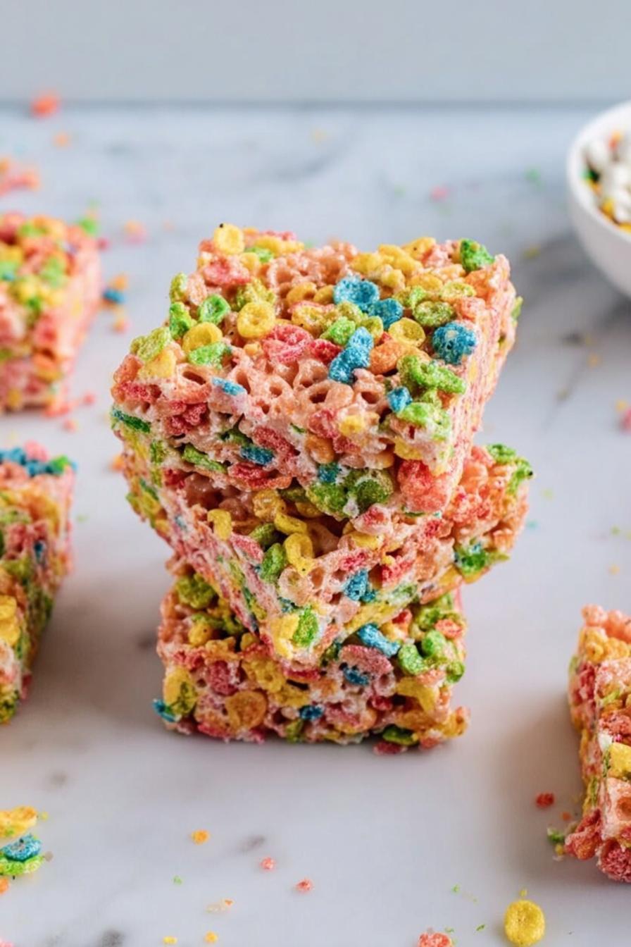 A quick no-bake snack riff using puffed rice cereal swapped for Fruity Pebbles and coconut oil instead of butter. Melted marshmallows cling to neon cereal pieces forming sticky, cheerful bars. The aroma thickens as marshmallows heat—sticky mass ready before it hardens. Chill slightly, then cut. Crunch with a hint of tropical coconut oil and tangy fruit flavor. Substitutions noted. Visual and tactile cues tell you when to pack down or pull off heat. Simple, colorful, nostalgic turned on its head with a coconut twist and lime zest option for zing. Friendly warning: marshmallow stickiness demands swift stirring and spreading, or it sets too soon.