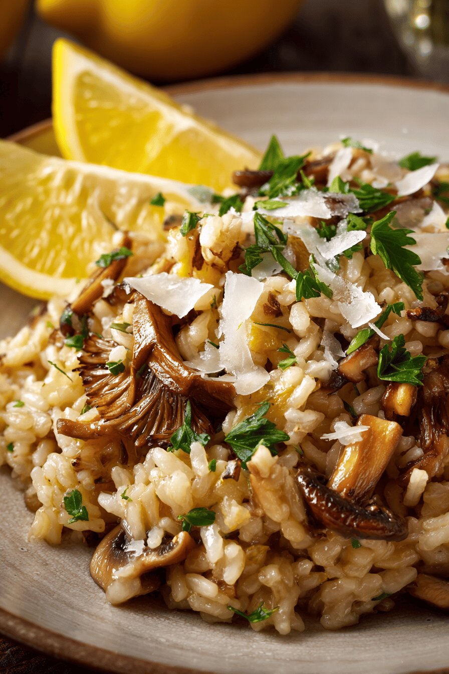 Porcini mushrooms bring deep umami and forest notes—a great swap for bolets dried mushrooms. Fresh cremini balance texture and body better than just whites; they have earthier tones and hold shape longer. Butter divided ensures mushrooms cook without burning then enrich shallots and rice later. Pecorino sharper than Parmesan, cut the richness; you can swap for aged Grana Padano or even a blend of Parmesan and Asiago. Use vegetable stock if looking vegetarian or lighter flavor. Avoid rinsing rice—just toast. Wine you want dry and crisp, no sweet Riesling; Sauvignon Blanc is a good option. Lemon juice last moment brightens flavors, prevents monotony in heavy dishes. Garlic smaller in amount and finely minced prevents harsh bites. If no porcini, substitute shiitake dried mushrooms. Cheese worries? Nutritional yeast sprinkled at end adds cheesy umami but no dairy.