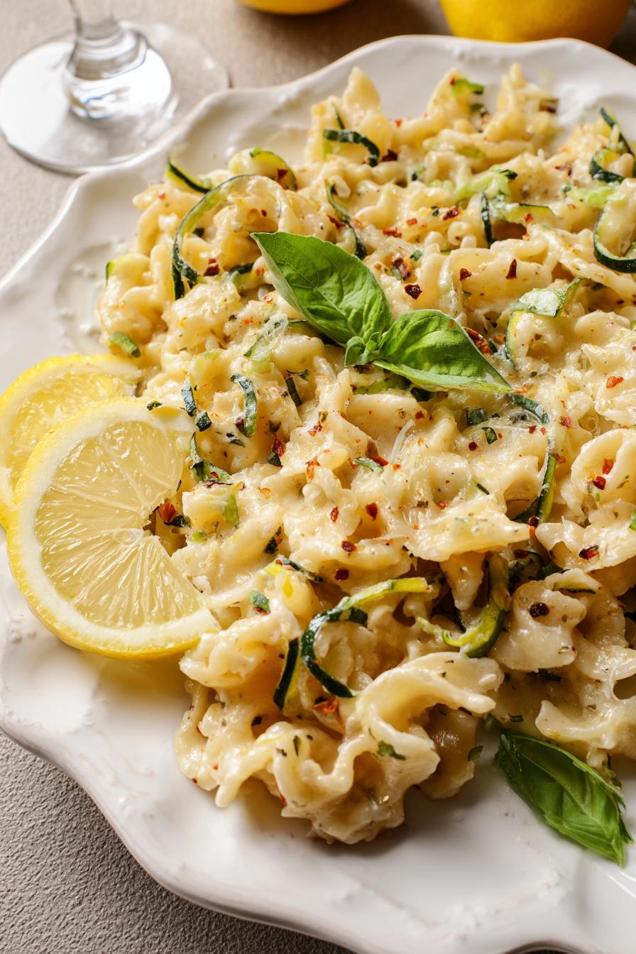 Zucchini’s water content varies wildly—always squeeze it well or your sauce ends up watery. If you don’t have guanciale, use good-quality pancetta or even thick-cut bacon, but reduce salt in recipe accordingly. Ricotta cuts the heavy cream in half without sacrificing the silkiness, keeping things balanced while adding a delicate tang. Fresh herbs? Mint works unexpectedly here, but basil or oregano could do. Lemon zest and juice both essential—zest for aroma, juice for brightness. Garlic minced fresh not powder, garlic burns fast here so low heat after adding important. Always reserve pasta water. Its starch thickens and smooths sauce, a critical lifesaver if your sauce feels clumpy or too thick.