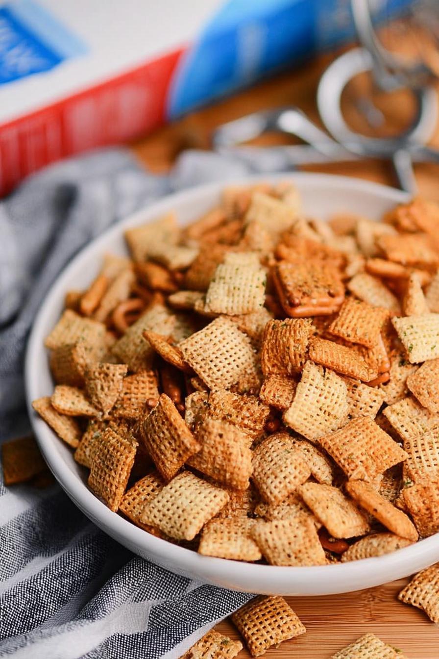 A crunchy snack combining crispy cereal with a buttery, herb-spiced coating. Oven-toasting develops nuttiness and locks in flavor, transforming plain cereal into a savory treat. Uses dry ranch seasoning powder which brings tang and herbs. Simple toss, spread, heat routine ensures even coverage and texture contrast. Store tight to keep crisp. Swap ingredients and timing to adjust texture or flavor depth. Practical tips for uniform mixing and baked crunch without burning. Good for gathering nibbles or casual munching. No fancy tools; just patience and a watchful eye on oven cues.
